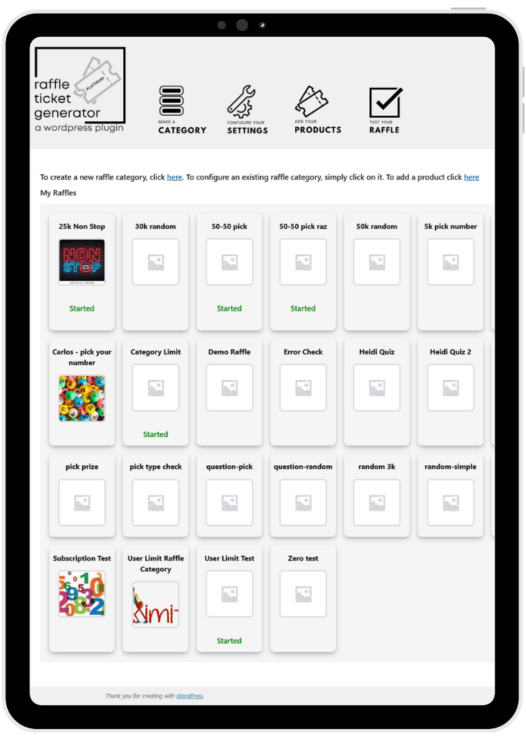 This plugin allows you to easily create and customize your raffle ticket layout, set limits on ticket sales, set your starting number and manage the entire raffle process within a user-friendly interface.